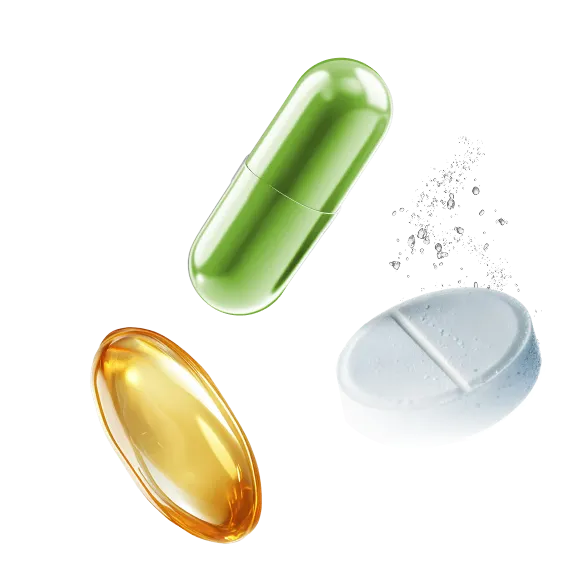Powders, multilayer tablets, effervescent tablets, hard capsules, compress gums, liquids, softgels, liquid capsules…