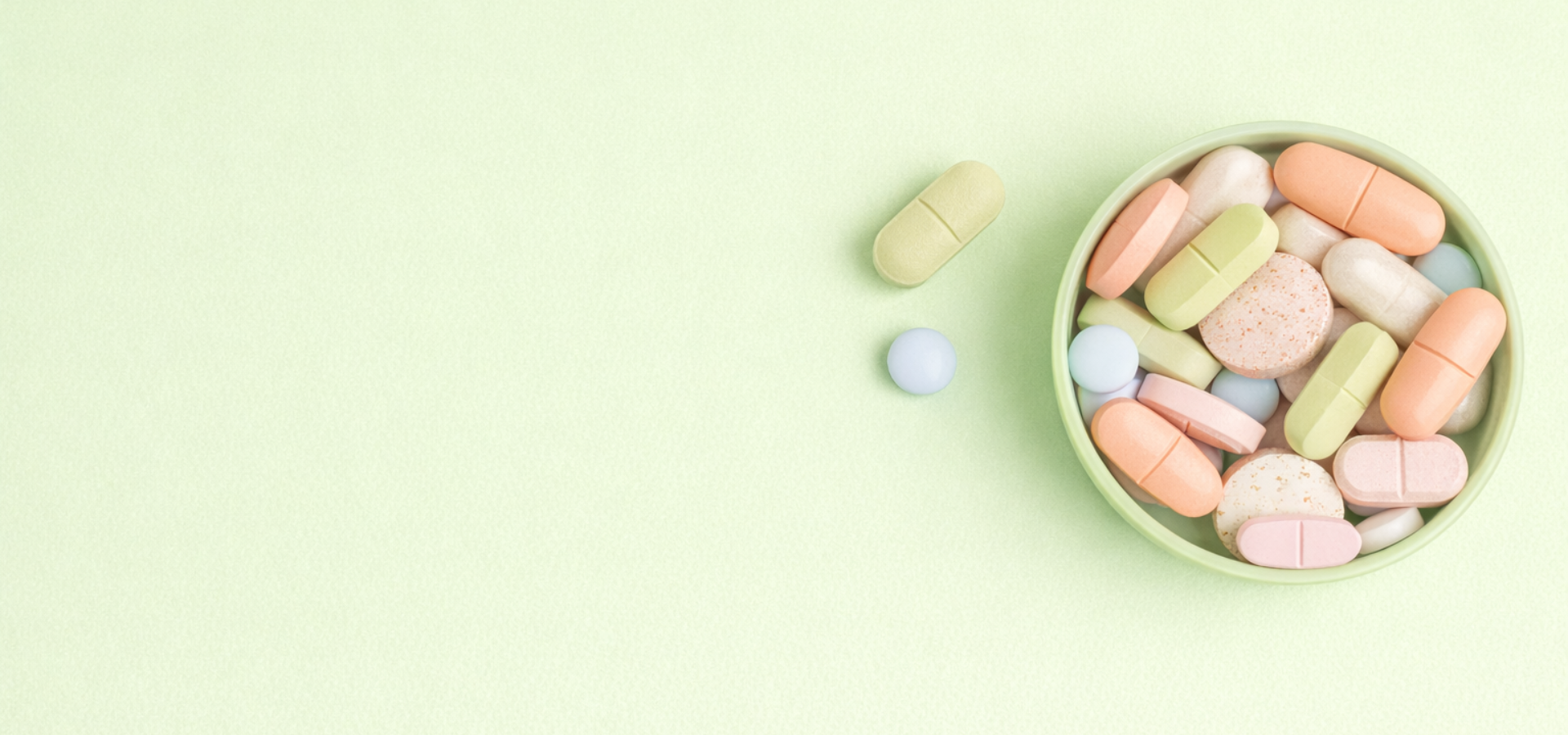 - Tweekleurige softgels die een dubbele werking illustreren.